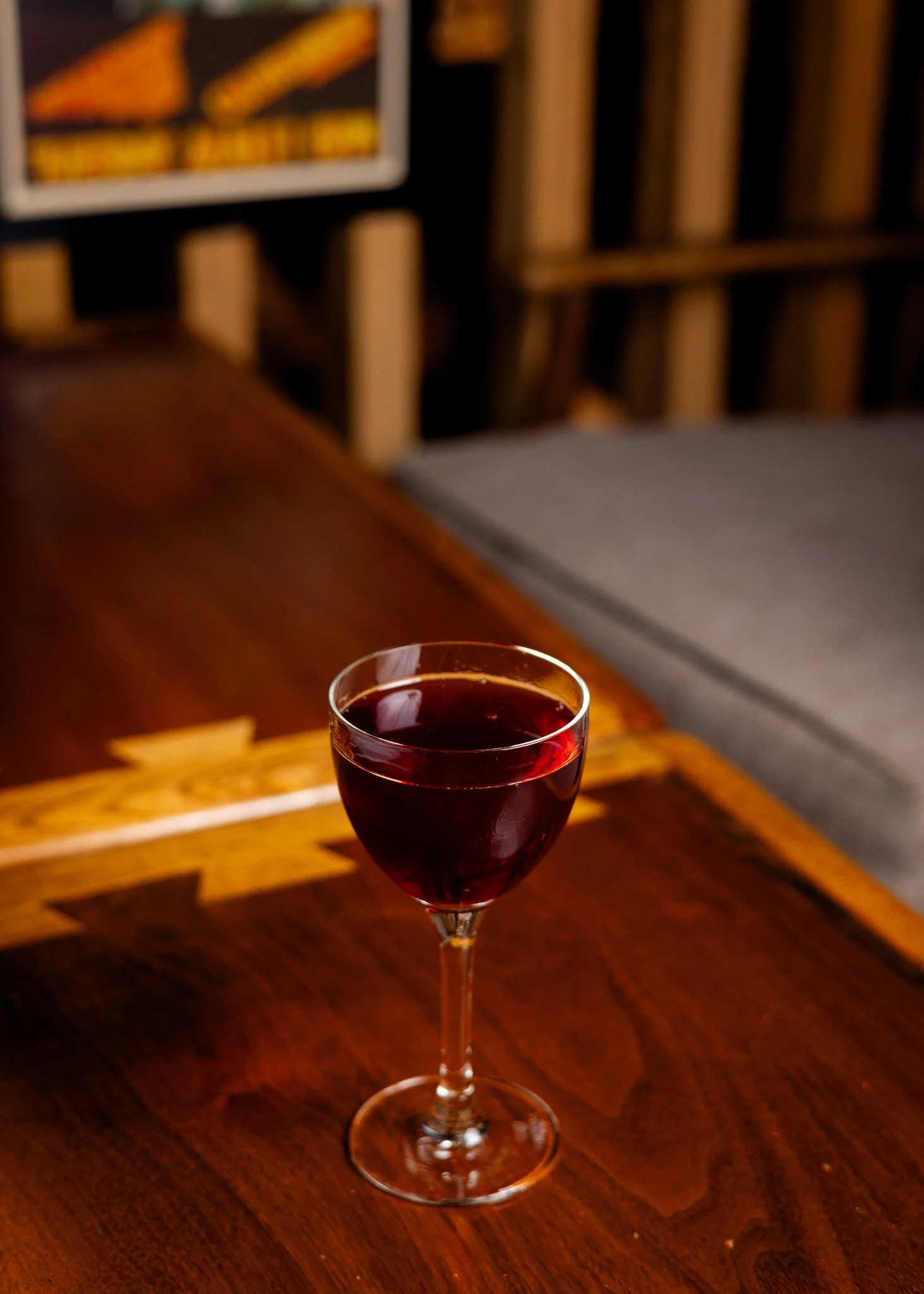 Muki is an earthy, umami-forward cocktail reminiscent of a Manhattan. It features clay-infused Pisco for minerality, Porcini Mushroom-infused Martini & Rossi Rubino for relaxed earthy flavors, and Palo Cortado and Rabarbaro Zucca for additional layers of complexity and balance.
